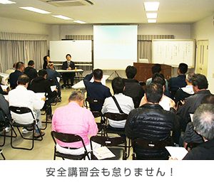 弊社では、輸送の公共性(公害と事故防止)を再確認し、輸送効率の向上、経営の合理化を計り、全従業員一体となって努力しております。